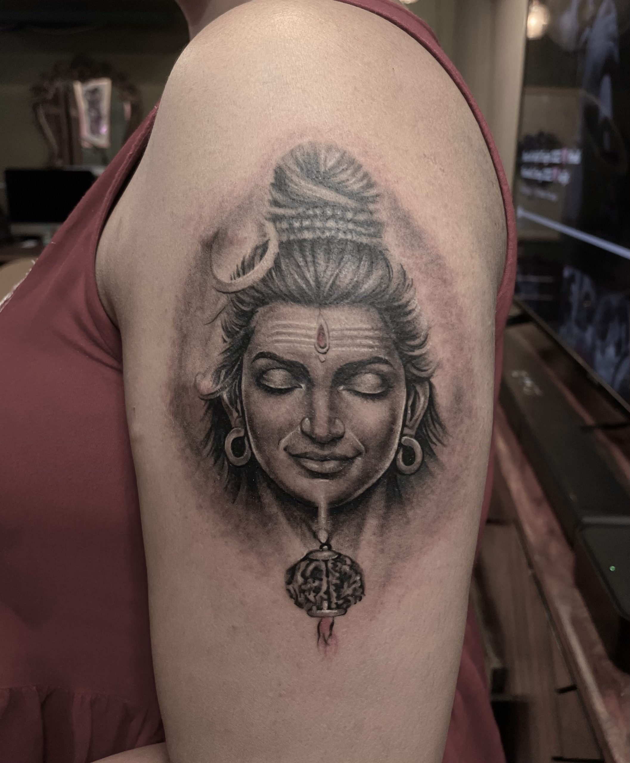 At Inkxident, Shiv tattoos are a powerful tribute to strength, spirituality and inner awakening. Each design — from fierce depictions of Lord Shiva in meditation to dynamic illustrations of Trishul, Damru or Mahadev’s third eye — is rendered with intricate detail and deep reverence. We blend artistry with devotion, capturing the divine presence of Shiva in every stroke. Whether you seek bold blackwork or a symbolic minimalist piece, our Shiv tattoos channel energy, balance and timeless spiritual meaning. Let your ink be a sacred connection to the destroyer of evil and the embodiment of cosmic power.
